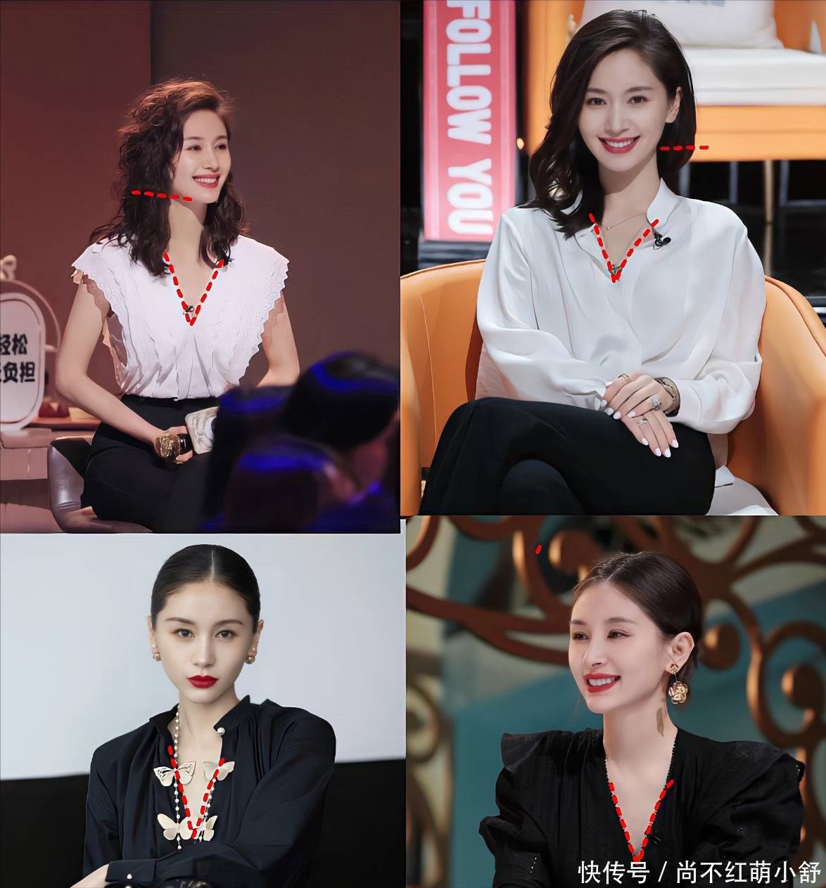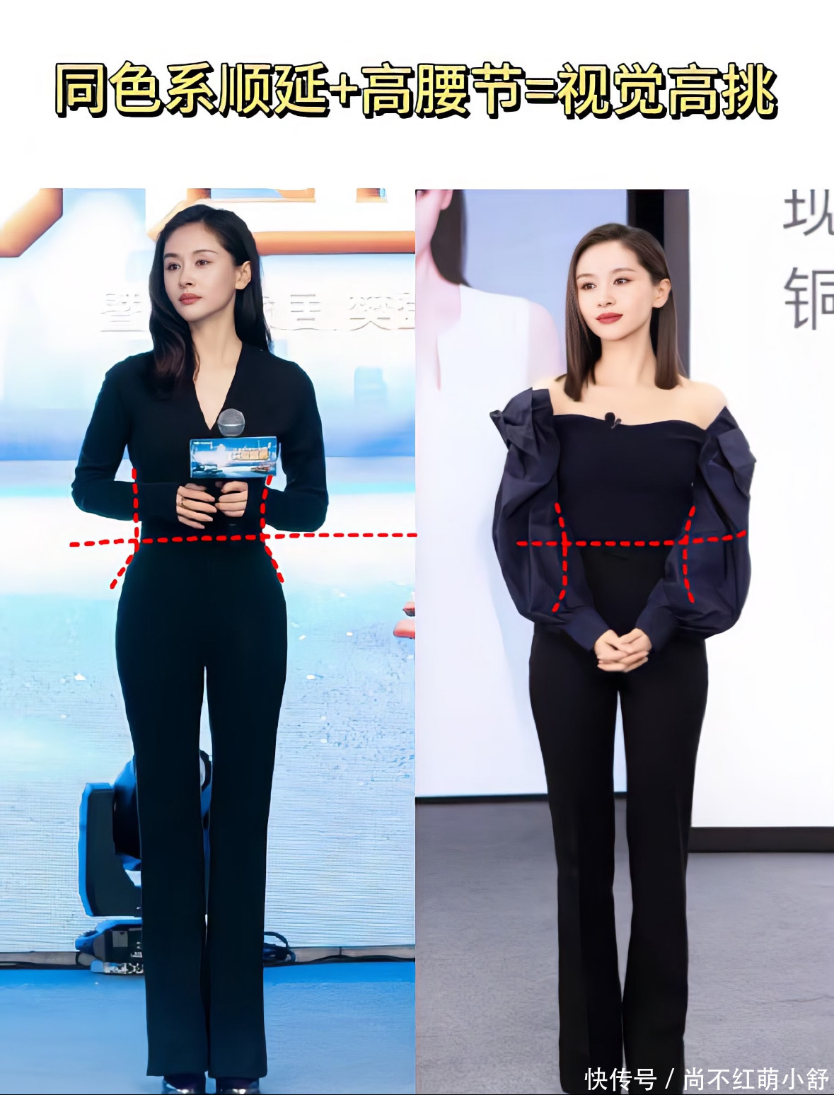 这是最简便、最灵验的“上短下长”结束神气。无论内搭是T恤、衬衫已经浮薄毛衣,皆备塞进下装里。王子文就连穿连衣裙,也时常会加一条腰带明确腰线。 避雷教导:塞的时代要庄重一下。若是是相比厚的毛衣,不错只塞前边中间一部分,打造减弱的褶皱感,幸免腰部饱读包。 诀要二:奥妙利用线条和视觉焦点,把视野往上提 王子文十分懂得开辟别东说念主的视野,让全球第一眼就看到她体格偏上的位置,从而忽略身高。 本事1:善用纵向线条拉伸