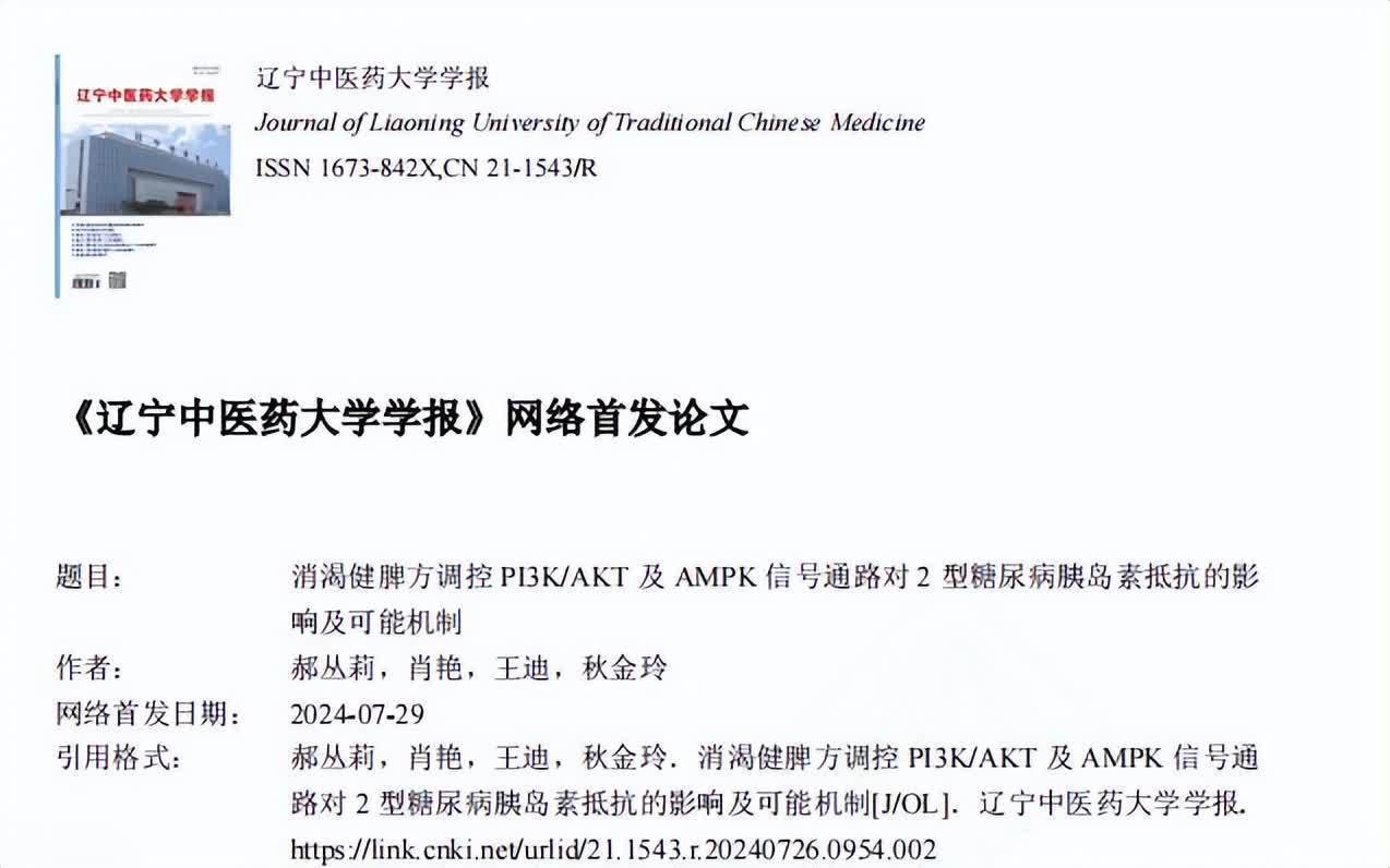 参考府上[1]郝丛莉.消渴健脾方调控PI3K/AKT及AMPK信号通路对2型糖尿病胰岛素违背的影响及可能机制欧洲杯体育,辽宁中医药大学学报,2024-07-29