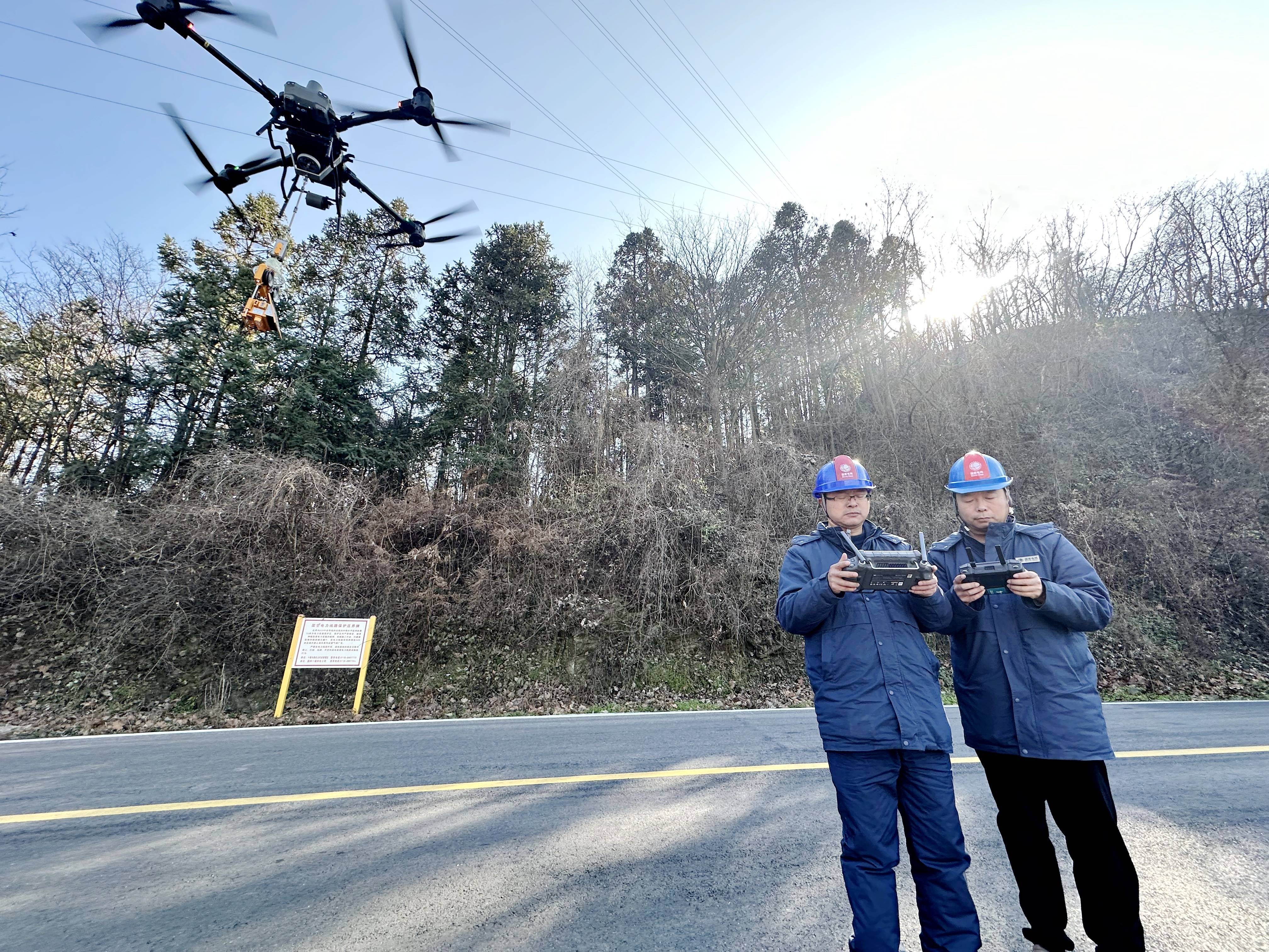 位于山顶的220千伏十房线16号铁塔下,国网十堰供电公司输电运检分公司的运维东谈主员徐拥峰、宋瑜半蹲在地,仔细检查着新式“防冰哨兵”——1台重约10公斤的橘红色防冰机器东谈主,并将其安全吊挂在无东谈主机底部。
